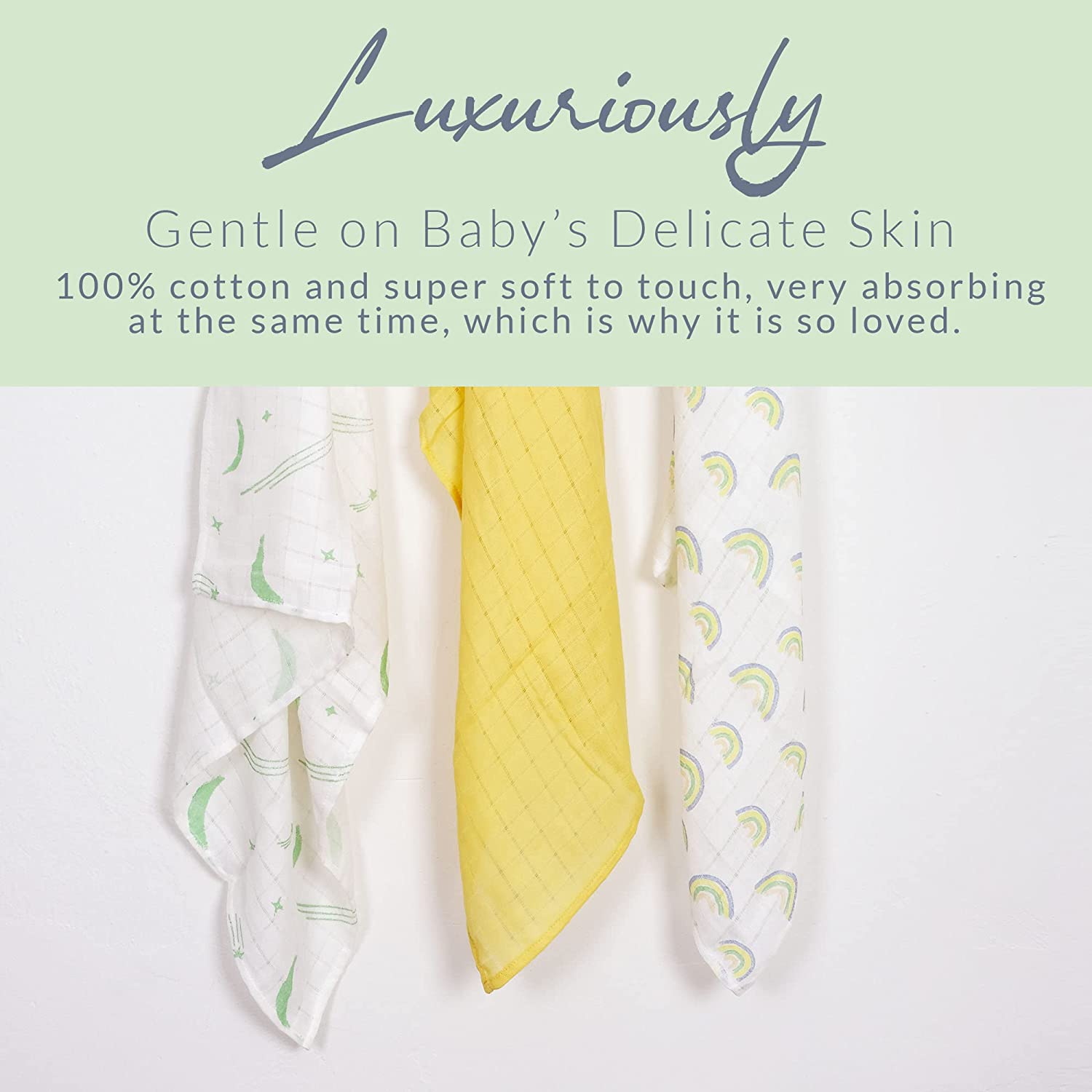- Easy Baby Care – Make baby care convenient. Our baby muslin cloths are extra absorbent, easily wiping off sweat, drools, and sticky messes. This premium muslin cloth also makes for an ideal baby bib, teething bib, changing pad, or burp cloth.